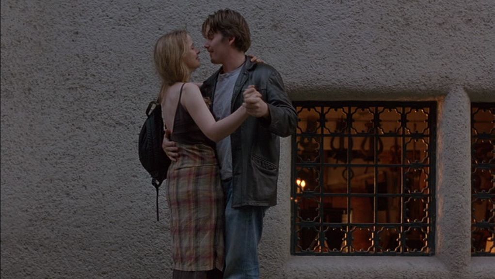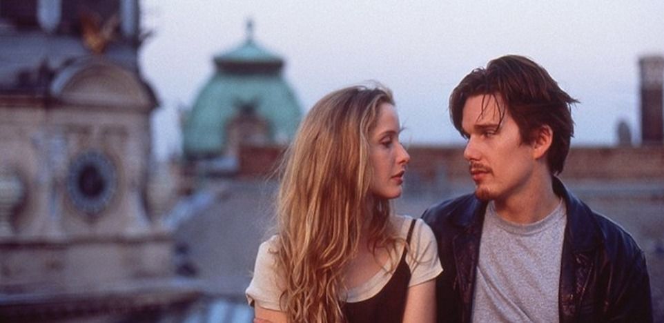 La trama – Metà anni ’90. Un treno che sfreccia tra le cittadini europee. Un ragazzo americano di nome Jesse (Ethan Hawke) sta andando a prendere il volo che lo riporterà negli Stati Uniti dopo essere stato malamente mollato dalla fidanzata a Madrid. Nello stesso vagone c’è Celine (Julie Delpy), una studentessa francese che cerca disperatamente un po’ di silenzio per poter leggere il suo libro in pace dopo essere stata a trovare la nonna a Budapest. Quando lei cambia posto per evitare di ascoltare la lite tra una rumorosa coppia di tedeschi e si siede accanto al giovane, tra i due scoppia la scintilla. Una conversazione spontanea, la complicità e l’interesse sempre più vivo. Il treno si ferma a Vienna e Jesse è costretto a scendere per raggiungere l’aeroporto. Il suo animo romantico però lo spinge a fare una proposta stravagante: